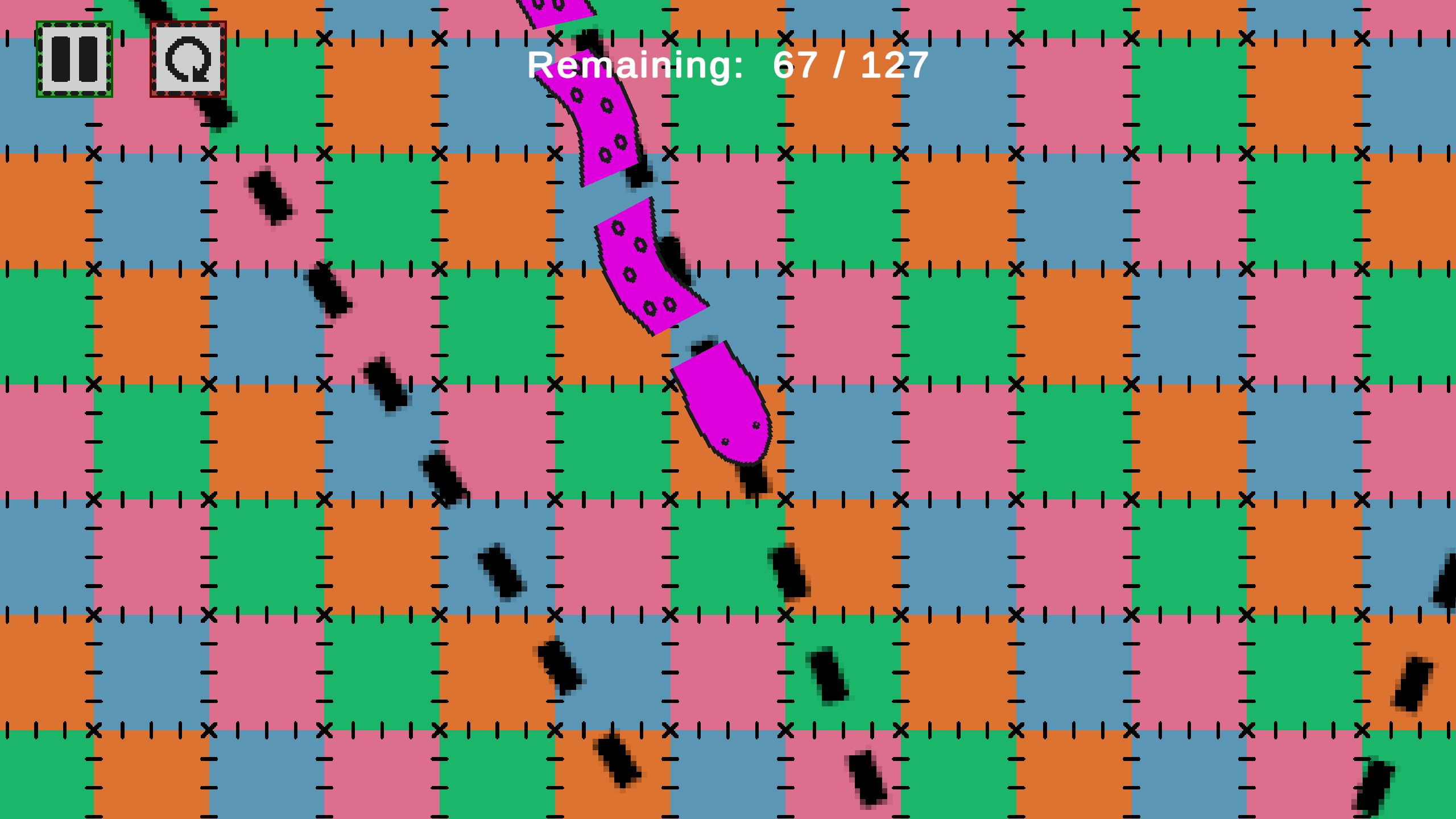Guide Salazar along the stitch lines and try to cover as many of them as you can before leading him to his tail to complete the game.